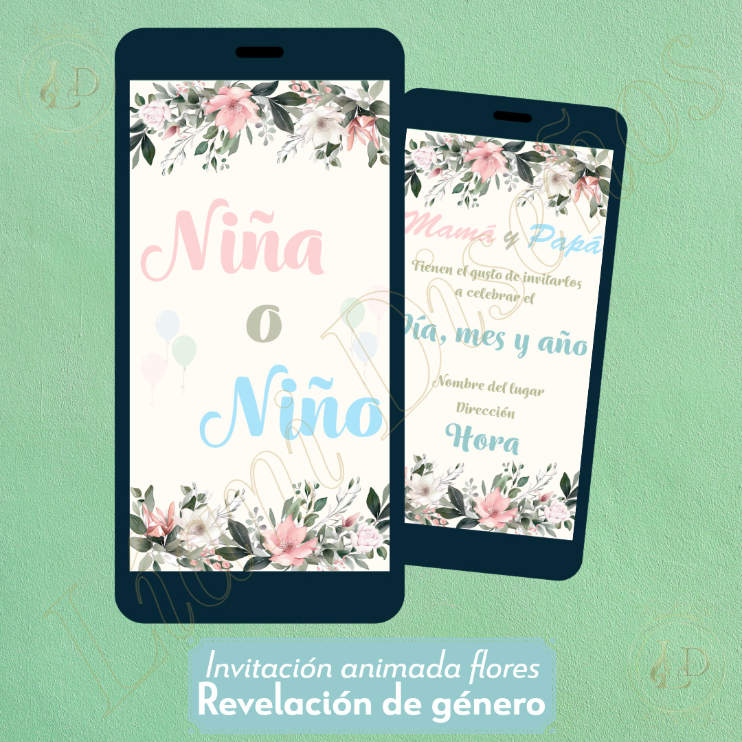 Invitación animada revelación de género (flores)